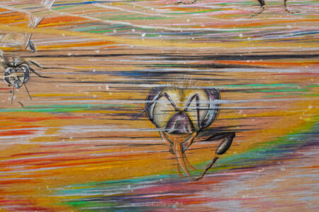 このことを宇宙の視点から俯瞰した時、彼らは地球という宇宙の一部を循環している状態にある。多くの生命体の循環を助け、それぞれの生命エネルギーを繋げ合っている。この循環が止まってしまうことは、宇宙自体へも何かしらの影響を及ぼすかも知れない。そんな貴重なミツバチは現在、農薬や戦争、環境破壊などの要因によって絶滅危惧種に指定されている。彼らをこのまま絶滅に追い込むのか、あるいは守るのかは人間の手に掛かっている。