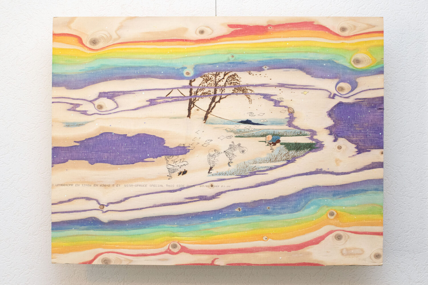 The evening sky is dyed with colors like blue, purple, red, peach, orange, and yellow,